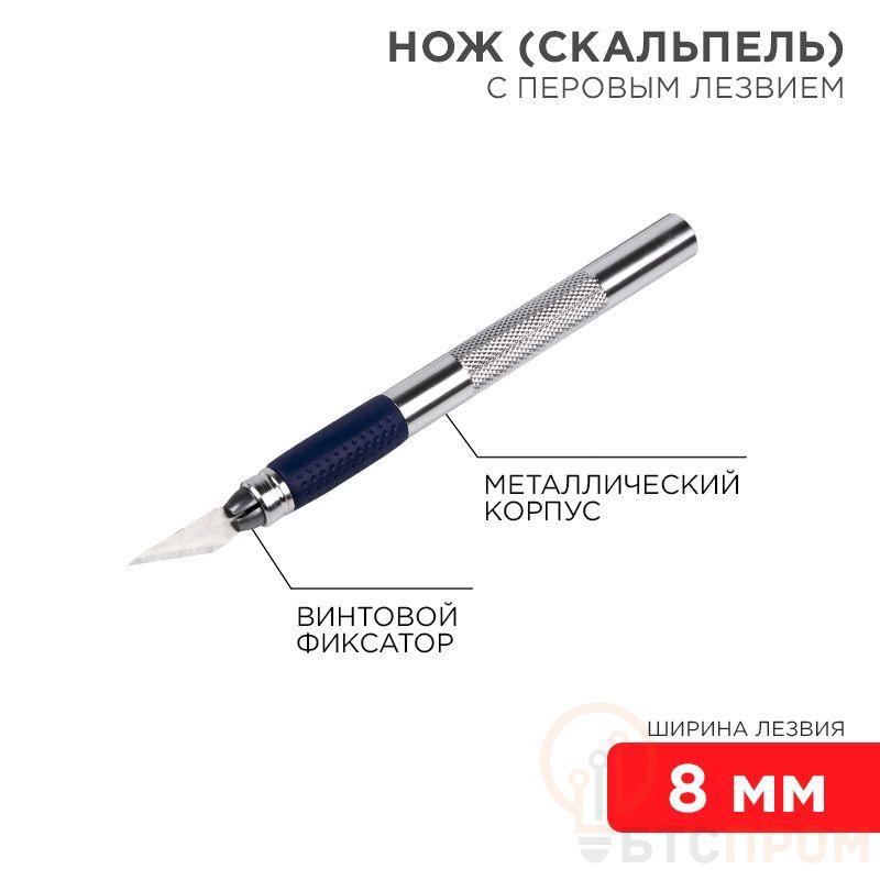 Нож с перовым лезвием REXANT подходит для художественных и дизайнерских работ. Режет различные материалы: бумагу, фольгу, древесину, пластик, ткань и кожу. Идеальный инструмент для дизайнеров, художников и моделистов. Лезвие ножа изготовлено из высококачественной инструментальной стали и надежно фиксируется. Металлический корпус ножа обеспечивает долгий срок службы. Замена лезвия осуществляется вручную. Ширина лезвия – 8 мм, длина – 25 мм, толщина – 0,5 мм. Длина рукоятки – 127 мм, ширина – 8 мм.