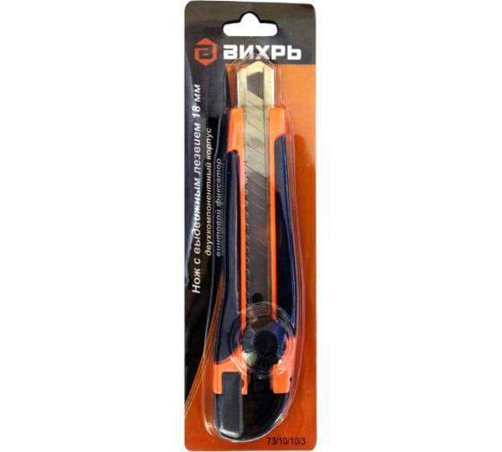 Нож с выдвижным лезвием 18мм двухкомпонентн. корпус винтовой фиксатор Вихрь 73/10/10/3