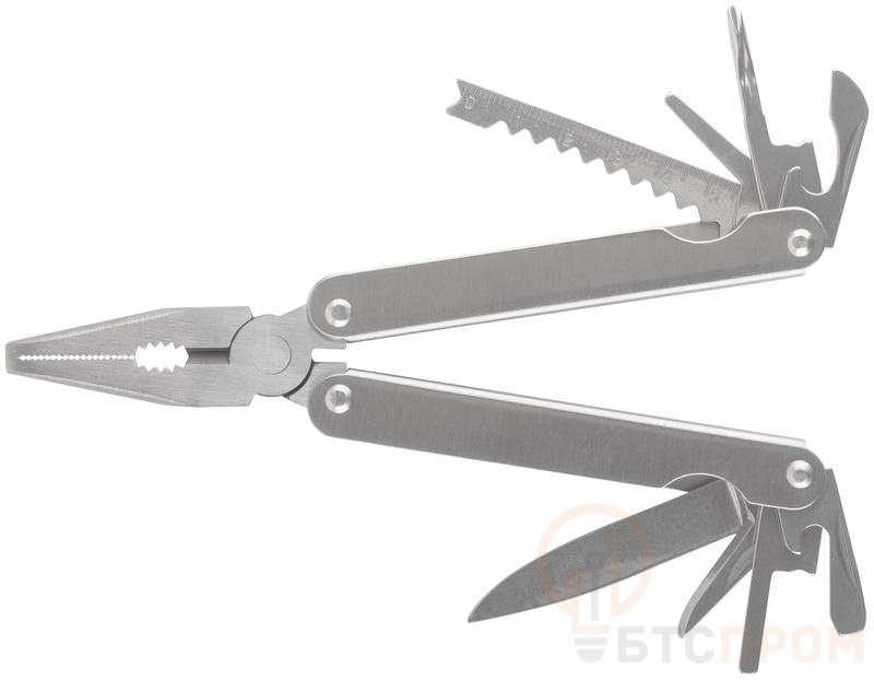 Многофункциональный. Для походов, путешествий и повседневного использования. Материал: нержавеющая сталь. Упаковка: нейлоновый чехол в блистере.