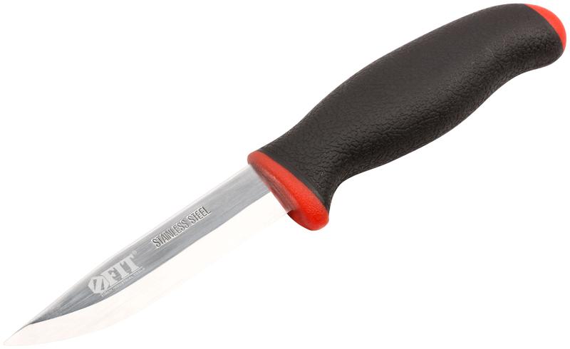 Строительный нож FIT IT предназначен для выполнения строительных и хозяйственных работ. С помощью этого универсального инструмента можно резать обои, напольные покрытия, некоторые виды пластика, провода. Лезвие выполнено из качественной нержавеющей стали, что обеспечивает его остроту и прочность. Прорезиненная рукоятка комфортно и надежно лежит в руке. Пластиковые ножны позволяют повесить инструмент на пояс или хранить в кармане. Стильный внешний вид позволяет использовать инструмент не только в строительных и ремонтных работах, но и брать с собой в походы и в поездки.