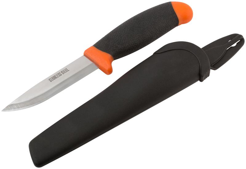 Строительный нож FIT IT предназначен для выполнения строительных и хозяйственных работ. С помощью этого универсального инструмента можно резать обои, напольные покрытия, некоторые виды пластика, провода. Лезвие выполнено из качественной нержавеющей стали, что обеспечивает его остроту и прочность. Прорезиненная рукоятка комфортно и надежно лежит в руке. Пластиковые ножны позволяют повесить инструмент на пояс или хранить в кармане. Стильный внешний вид позволяет использовать инструмент не только в строительных и ремонтных работах, но и брать с собой в походы и в поездки.