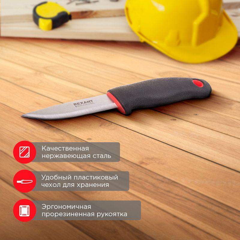 Нож строительный универсальный REXANT предназначен для проведения отделочных и монтажных работ. Пригодится в походах, на рыбалке, во время туризма. Усиленное лезвие выполнено из качественной стали, подходит для работы с толстыми материалами. Прецизионная заточка обеспечивает чистоту и точность реза. Удобная пластиковая рукоятка не скользит в руках, что создает комфорт и повышенную безопасность при работе. Нож укомплектован пластиковыми ножнами для удобного хранения и безопасной транспортировки. На корпусе чехла предусмотрена клипса-зажим, которая позволяет закреплять инструмент на одежде. Нож обладает повышенным рабочим ресурсом.