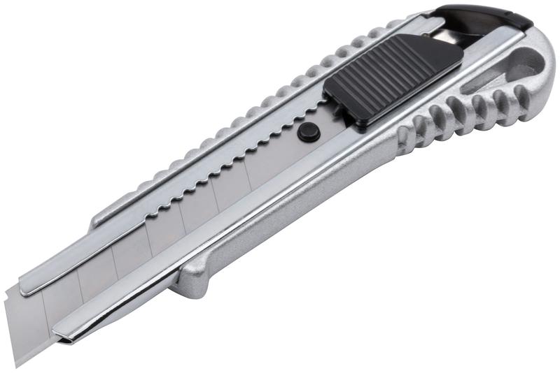 Технический нож КУРС "Классик" применяется для резки бумаги, обоев,скотча, картона средней твердости.Форма ножа обеспечивает крепкий захват и предотвращает выскальзывание при использовании. Компактный корпус изготовлен из металла, сегментированное лезвие из высокоуглеродистой инструментальной стали состоит из 15 сегментов,гарантирует стабильность во время работы.Нож имеет металлические направляющие и металлический фиксатор лезвия.