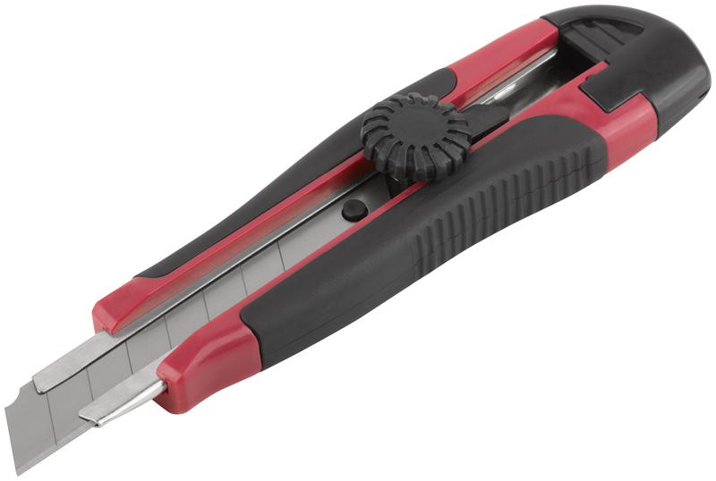 Технический нож КУРС "Стронг" применяется для резки бумаги, обоев,скотча, картона средней твердости. Сегментированное лезвие из высокоуглеродистой стали SK-5. Вращающийся пластиковый прижим позволяет легко зафиксировать лезвие в определенном положении. Пластиковый корпус с прорезиненными вставками, усиленный металлической направляющей, которая обеспечивает плавный ход лезвия. Благодаря эргономичному пластиковому прорезиненному корпусу , инструмент удобно лежит в руке во время работы