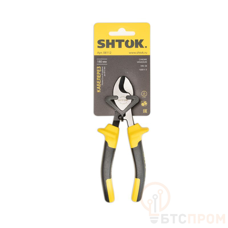 Кабелерез SHTOK (08112) — профессиональный инструмент для быстрой и точной резки кабелей и проводов с напряжением до 1000В. Рабочие губки длиной 180 мм изготовлены из кованой инструментальной стали, что обеспечивает высокую прочность и долговечность даже при работе с жесткими жилами.