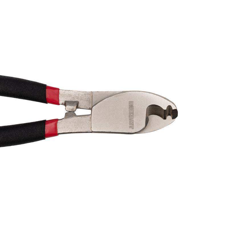 Кабелерез предназначен для перекусывания проводов и кабеля с максимальным диаметром 10 мм и сечением до 85 мм2, а также для зачистки пластмассовой (ПВХ) изоляции. Корпус кабелереза изготовлен из высокопрочной хром-ванадиевой стали с оксидированным никелевым покрытием. С помощью рукояток можно настроить оптимальный диаметр разреза для зачистки изоляции и адаптировать инструмент под различные диаметры провода для удобной резки. Твердость закаленного сплава режущих кромок составляет 58-62 HRC, что позволяет им сохранять свою остроту и прочность при интенсивном использовании. Усиленные обливные изоляционные рукоятки не дают инструменту выскальзывать из руки при работе благодаря надежному сцеплению с материалом.