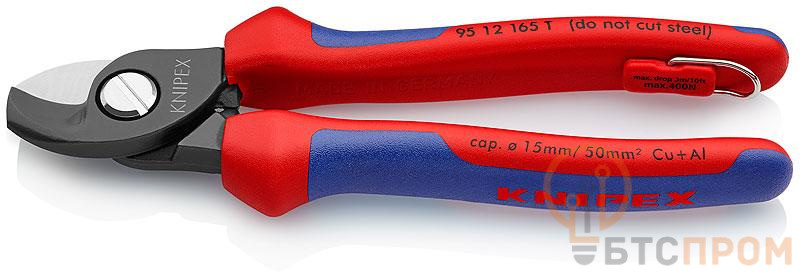 Кабелерез рез: кабель d 15мм (50кв.мм AWG 1/0) L-165мм 2-компонентные рукоятки крепление для страховки черн. Knipex KN-9512165T
