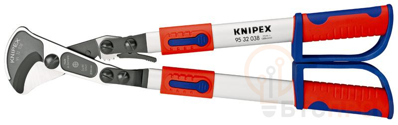 Кабелерез с храповым механизмом (трещоткой) и выдвижными телескопическими рукоятками L-570мм черн. Knipex KN-9532038