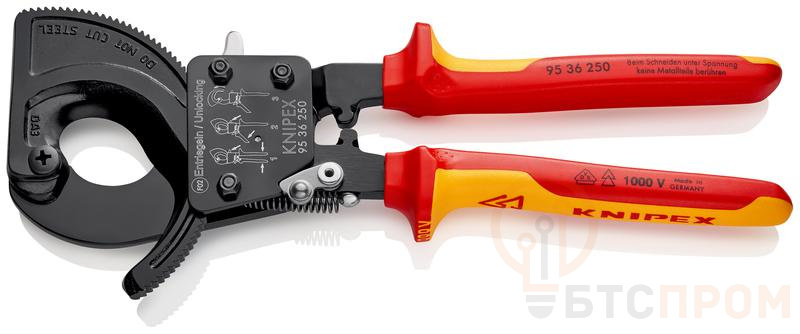 Кабелерез с храповым механизмом (трещоткой) VDE рез: кабель d 32мм (240кв.мм MCM 500) L-250мм черн. Knipex KN-9536250