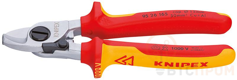 Кабелерез VDE с пружиной рез: кабель d 15мм (50кв.мм AWG 1/0) L-165мм диэлектрические хромированный Knipex KN-9526165