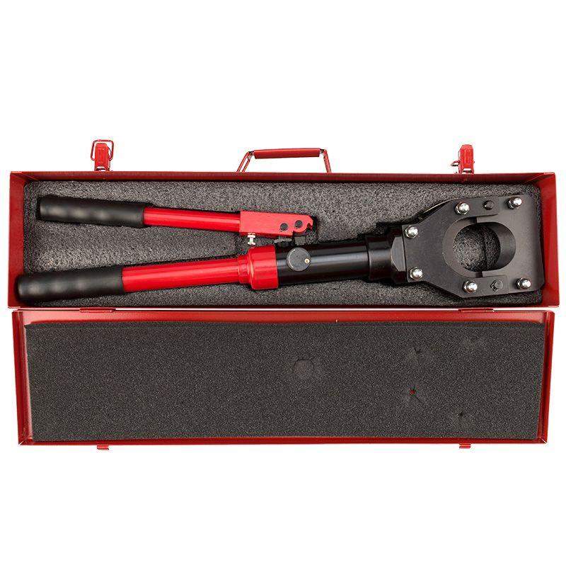 Гидравлические ножницы предназначены для резки многожильных медных и алюминиевых кабелей. Корпус и рабочие части ножниц изготовлены из высокопрочной инструментальной стали. Инструмент подходит для работы с толстым кабелем: максимальный диаметр телефонного кабеля составляет 50 мм, бронированного медного или алюминиевого - 45 мм. Гидравлический инструмент требует меньше усилий, чем механический. Для надежной работы в холодное время года предусмотрена возможность замены гидравлической жидкости. Однокомпонентные защитные рукоятки выполнены из плотного нескользящего резинового покрытия, которое делает работу с инструментом легкой и приятной. Инструмент поставляется в стальном кейсе, удобном для хранения и транспортировки.