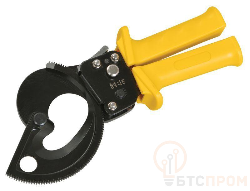 Инструмент для резки кабеля с пластмассовой и бумажной изоляцией изготавливается из инструментальной стали с высокой режущей способностью. Специальная геометрия лезвий позволят осуществлять работу безопасно и быстро. Обладает высокой стабильностью и незначительной массой. Ножницы секторные снабжены храповым механизмом, выдвижными ручками, блокиратором резки. Замок устроен таким образом, что позволяет осуществлять обратный ход лезвия, необходимый в случае попадания в нож посторонних объектов. Чрезвычайно высокая режущая способность инструмента достигается за счёт оптимальной конструкции ножниц и режущих ножей специальной геометрии.