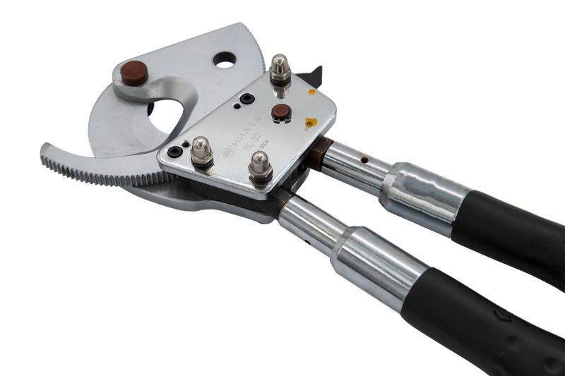 Секторные ножницы марки С используются для обрезки проводников - кабелей и проводов, выполненных из цветных металлов - мягкой меди (твердость ~45 МПа) или алюминия одножильного или многожильного исполнения. При обрезке твердотянутой меди (твердость ~110 МПа), сечение проводника должно быть меньше максимально допустимого сечения на два сегмента (прим: 240мм2 - 185мм2 - 150мм2) Изделие RC-32/С-95 предназначено для обрезки кабелей с ленточной броней. Секторные ножницы марки RС используются для обрезки проводников - кабелей и проводов, выполненных из цветных металлов - алюминий, медь; сталеалюминевых проводов марки АС, стальных проволок из низкоуглеродистой стали, для обрезки кабелей с ленточной броней, арматуры. Храповой механизм позволяет производить обрезку пучка проводов