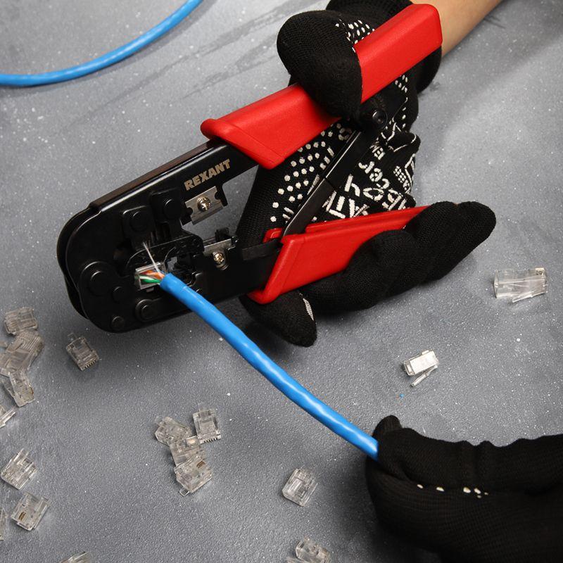 Кримпер HT-568R предназначен для обжима компьютерных и телефонных разъемов RJ-45, RJ-12, RJ-11. Корпус кримпера изготовлен из высокопрочной хром-ванадиевой стали с воронением, благодаря чему устойчив к механическим воздействиям и имеет продолжительный срок службы. Обладает дополнительными функциями обрезки проводов и снятия изоляции с плоских и круглых кабелей. Режущие сегменты закругленной формы надежно обхватывают кабель и обрезают его без деформаций и скосов, а для большего удобства предусмотрена функция быстрой разблокировки лезвий после обрезки. Оснащен возвратным механизмом, который обеспечивает обратный ход рукояток и упрощает процесс работы с инструментом. Храповой механизм производит полный цикл качественной опрессовки. Однокомпонентные защитные рукоятки выполнены из плотного нескользящего синтетического материала, который делает работу с инструментом легкой и приятной.