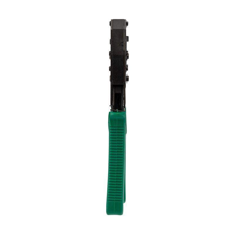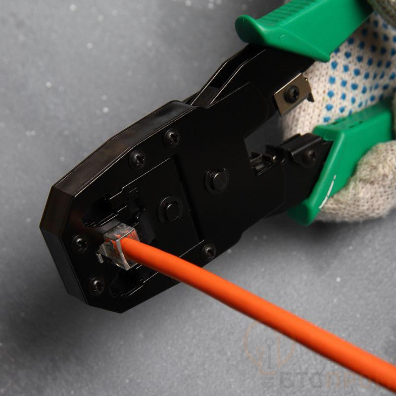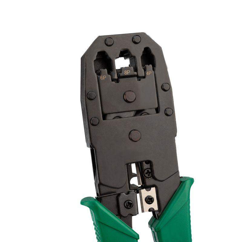 Кримпер HT-315 предназначен для обжима компьютерных и телефонных разъемов RJ-45, RJ-12, RJ-11, RJ-10. Корпус кримпера изготовлен из высокопрочной хром-ванадиевой стали с воронением, благодаря чему устойчив к механическим воздействиям и имеет продолжительный срок службы. Обладает дополнительными функциями обрезки проводов и снятия изоляции с плоских и круглых кабелей. Оснащен возвратным механизмом, который обеспечивает обратный ход рукояток и упрощает процесс работы с инструментом. Однокомпонентные защитные рукоятки выполнены из плотного нескользящего синтетического материала, который делает работу с инструментом легкой и приятной.