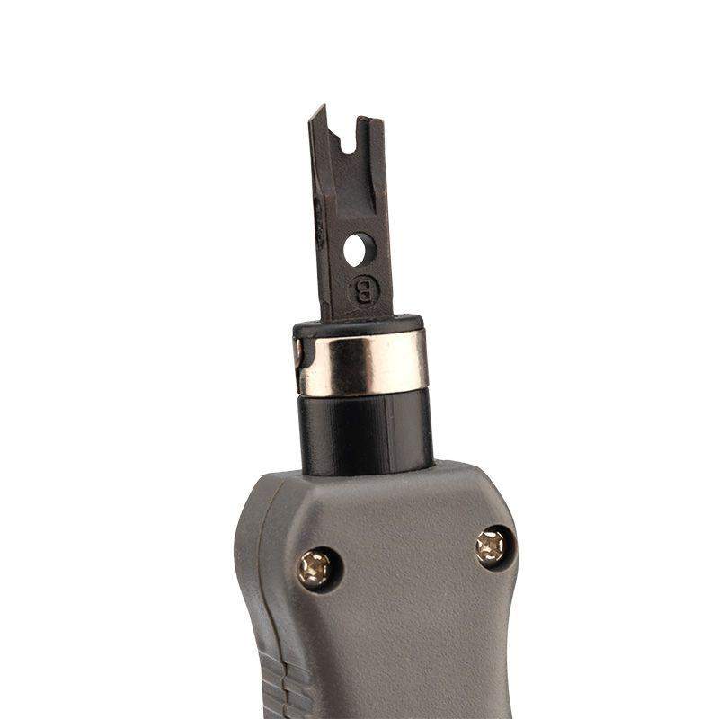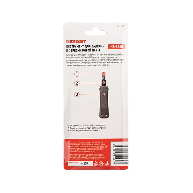 Инструмент HT-324B предназначен для заделки кабеля на кроссах, патч-панелях, розетках и модулях, заделки контактов 110-го типа. Корпус инструмента изготовлен из ударопрочного пластика, рабочие части выполнены из высокопрочной инструментальной стали. Заделка имеет подпружиненный суппорт крепления лезвия, само лезвие можно быстро заменить - в комплект входит двухсторонний нож с отрезкой. В ручке инструмента предусмотрено специальное отверстие, в которое прячется вторая сторона рабочего лезвия для удобного и безопасного хранения. Для данного инструмента предусмотрен сменный нож (арт. 12-4224) Пластиковая рукоятка благодаря специальной форме удобно лежит в руке и обеспечивает легкую и приятную работу с инструментом.