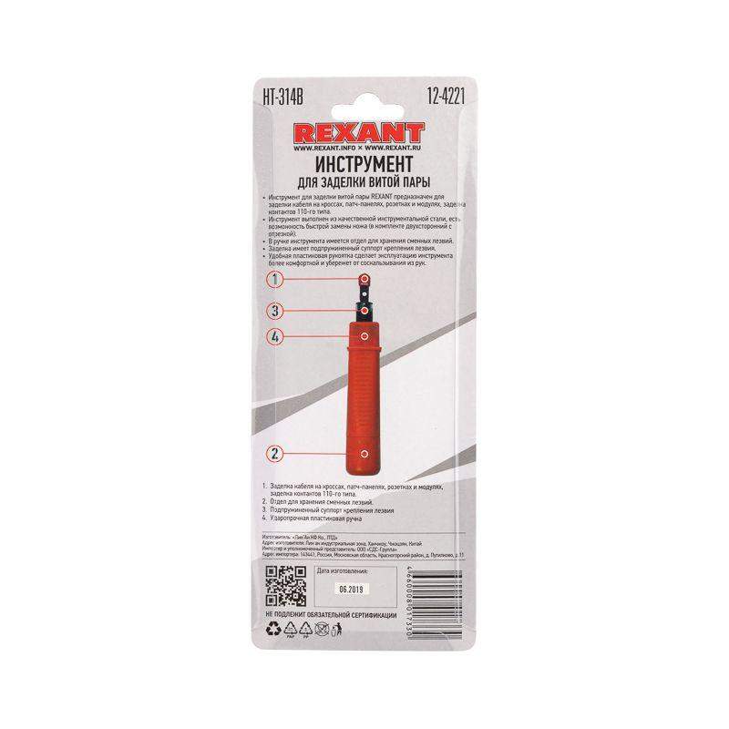 Инструмент HT-314B предназначен для заделки кабеля на кроссах, патч-панелях, розетках и модулях, для заделки контактов 110-го типа. Корпус инструмента выполнен из ударопрочного пластика, рабочие части выполнены из высокопрочной инструментальной стали. Специальный регулятор позволяет настроить жесткость забивки. Заделка имеет подпружиненный суппорт крепления лезвия, само лезвие можно быстро заменить - в комплект входит двухсторонний нож с отрезкой. В ручке инструмента имеется отдел для хранения сменных лезвий. Пластиковая рукоятка благодаря специальной форме удобно лежит в руке и обеспечивает легкую и приятную работу с инструментом.
