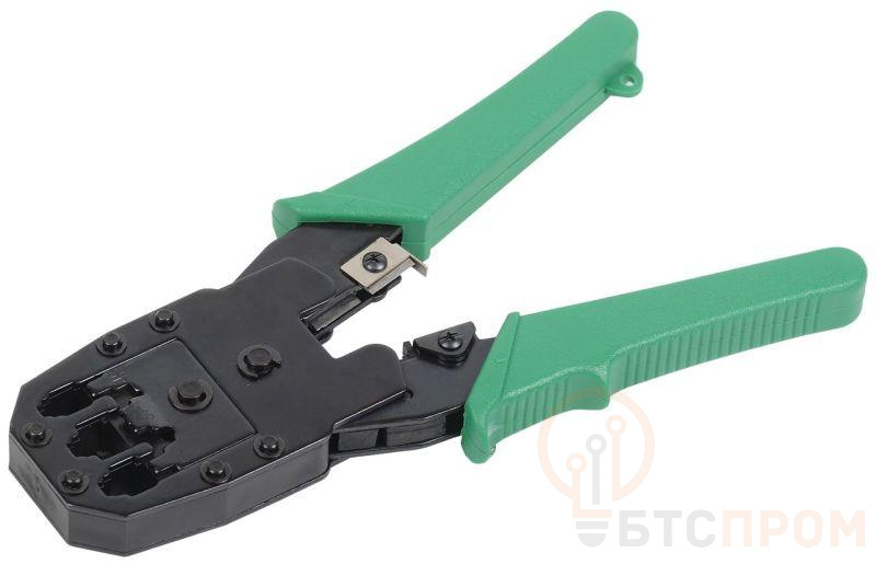 Инструмент обжимной для RJ45; RJ12; RJ11 без храпового механизма ручки из ПВХ с цепочкой зел. ITK TM1-G10V