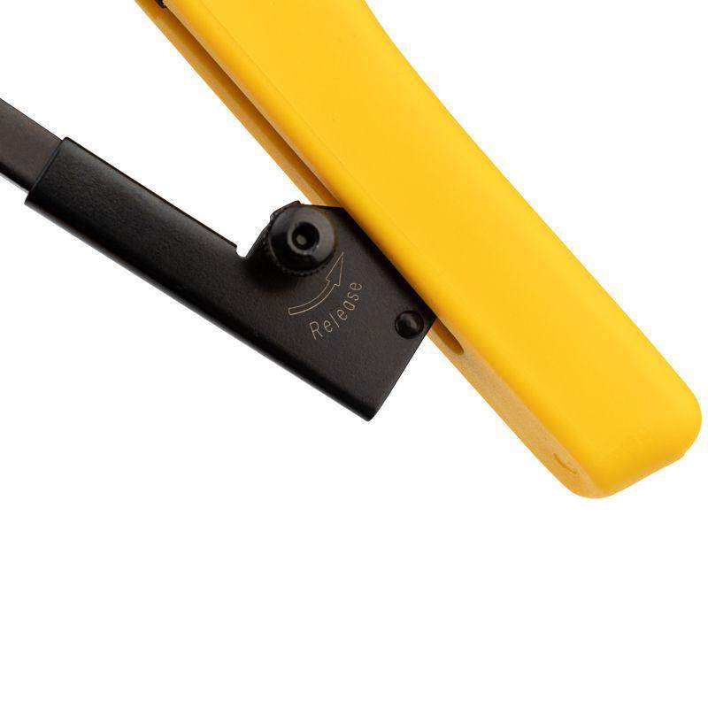 Кримпер HT-200R предназначен для обжима компьютерных и телефонных разъемов RJ-45, RJ-12, RJ-11, RJ-10. Корпус кримпера изготовлен из высокопрочной хром-ванадиевой стали с воронением, благодаря чему устойчив к механическим воздействиям и имеет продолжительный срок службы. Обладает дополнительными функциями обрезки проводов и снятия изоляции с плоских и круглых кабелей. Оснащен возвратным механизмом, который обеспечивает обратный ход рукояток и упрощает процесс работы с инструментом. Храповой механизм производит полный цикл качественной опрессовки. Однокомпонентные защитные рукоятки выполнены из плотного нескользящего синтетического материала, который делает работу с инструментом легкой и приятной.