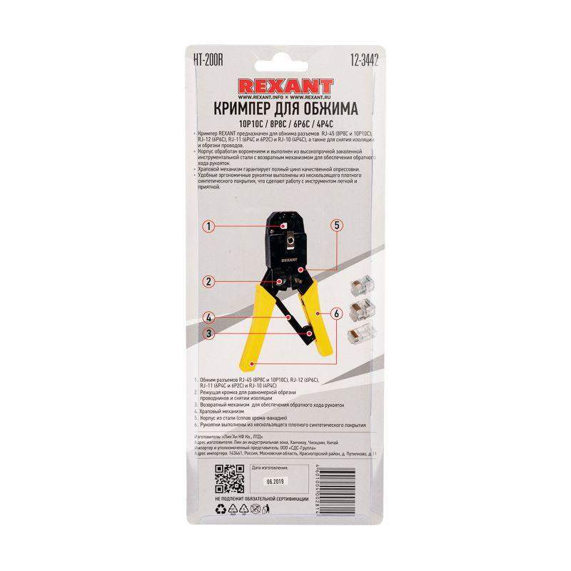 Кримпер для обжима 10P10C/8P8C/6P6C/4P4C (HT-200R) (TL-200R) Rexant 12-3442 фото в каталоге от BTSprom.by