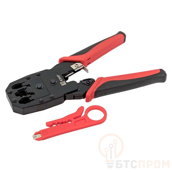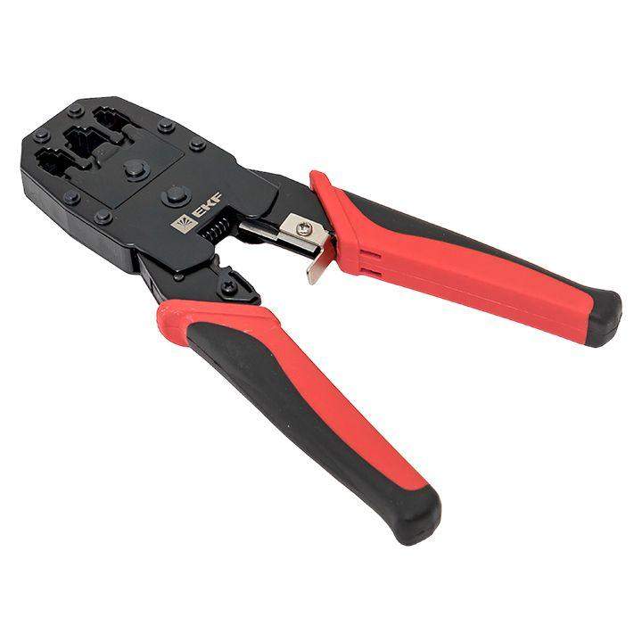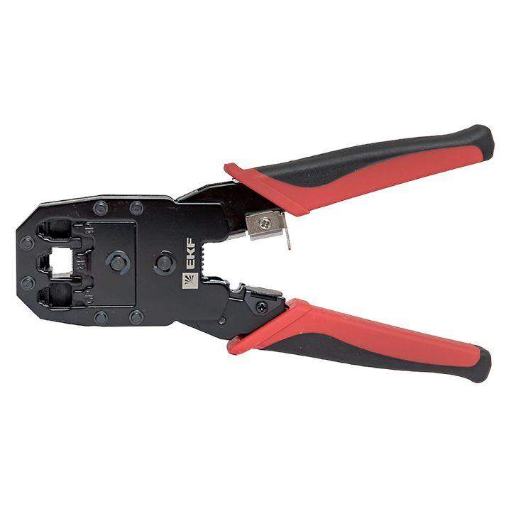 Кримпер предназначен для обжима разъемов 8Р8С (RJ-45), 6Р6С (RJ-12), 6P4C (RJ-11), 6Р2С, 4P4C, 4P2C, а также для снятия изоляции, как с плоских, так и круглых кабелей и обрезки проводов. В комплекте поставляется Инструмент для заделки и обрезки проводников во врезные контакты на кроссах, патч-панелях, розетках и модулях, заделка контактов 110 типа и типа KRONE.