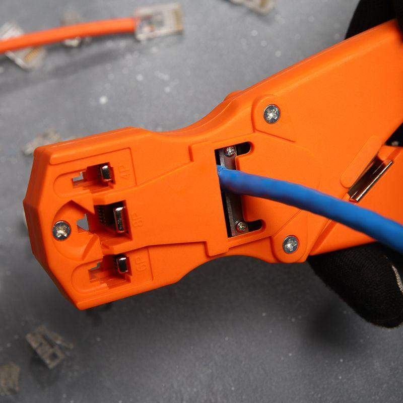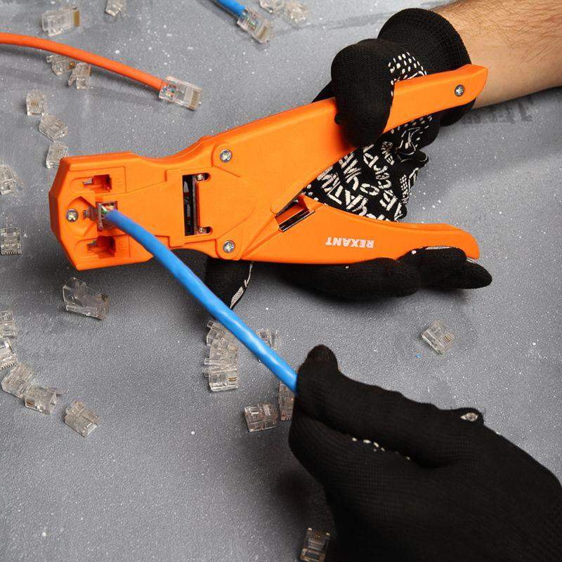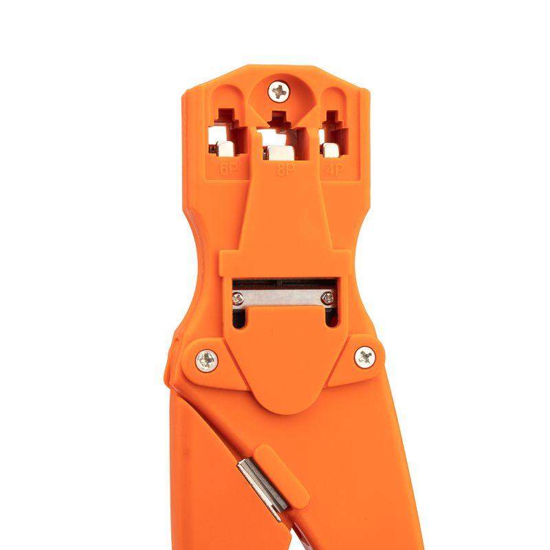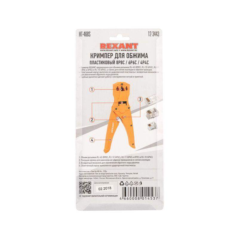 Кримпер HT-468S предназначен для обжима компьютерных и телефонных разъемов RJ-45, RJ-12, RJ-11, RJ-10. Корпус кримпера изготовлен из ударопрочного пластика, что облегчает работу с инструментом и снижает нагрузку на руку. Обладает дополнительными функциями обрезки проводов и снятия изоляции с плоских и круглых кабелей. Оснащен возвратным механизмом, который обеспечивает обратный ход рукояток и упрощает процесс работы с инструментом. Удобные нескользящие рукоятки делают работу с инструментом легкой и приятной.
