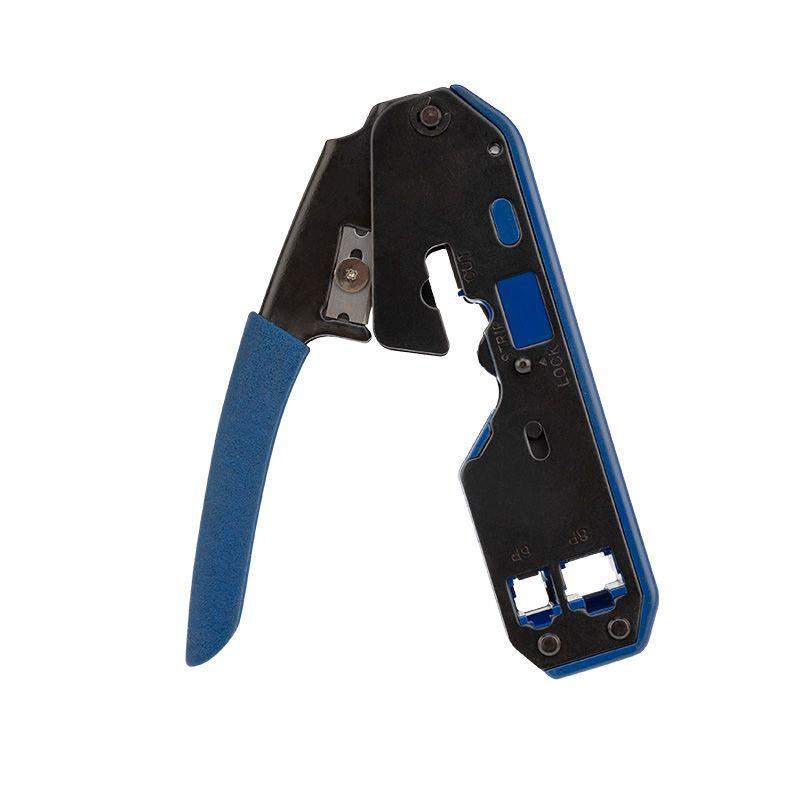 Кримпер HT-668 предназначен для обжима компьютерных и телефонных разъемов RJ-45, RJ-11/12. Корпус кримпера изготовлен из высокопрочной хром-ванадиевой стали с воронением, благодаря чему устойчив к механическим воздействиям и имеет продолжительный срок службы. Обладает дополнительными функциями обрезки проводов и снятия изоляции с плоских и круглых кабелей. Оснащен возвратным механизмом, который обеспечивает обратный ход рукояток и упрощает процесс работы с инструментом, и встроенным замком, который удерживает инструмент в закрытом положении во время хранения. Однокомпонентные защитные рукоятки выполнены из плотного нескользящего синтетического материала, который делает работу с инструментом легкой и приятной.
