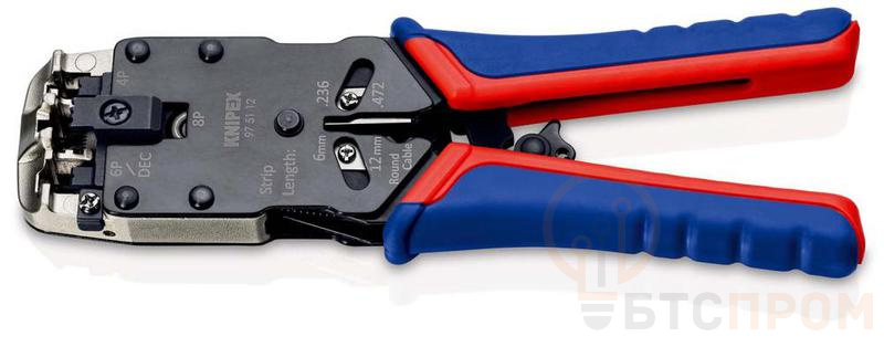 Пресс-клещи для штекеров RJ (Western) для реза и зачистки плоских неэкранированных телефонных кабелей Knipex KN-975112