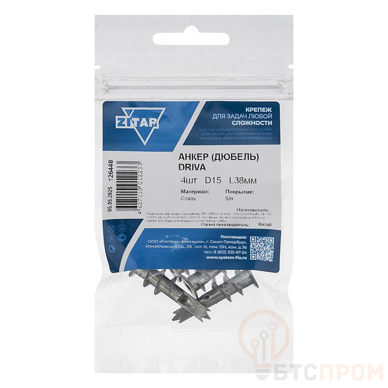 Дюбель DRIVA SPA имеет плоскую головку с крестообразным шлицем PH, самонарезающую резьбу с крупным шагом и наконечник в виде бура. Изготовлен из цинк-алюминиевого сплава. Применяется для крепления легких конструкций к гипсокартонным листам (ГКЛ). Конструкция дюбеля предотвращает его самопроизвольное выкручивание и обеспечивает надежное закрепление без распирающего усилия. Предварительное сверление отверстия для монтажа не требуется. При необходимости дюбель может быть демонтирован и использован повторно.