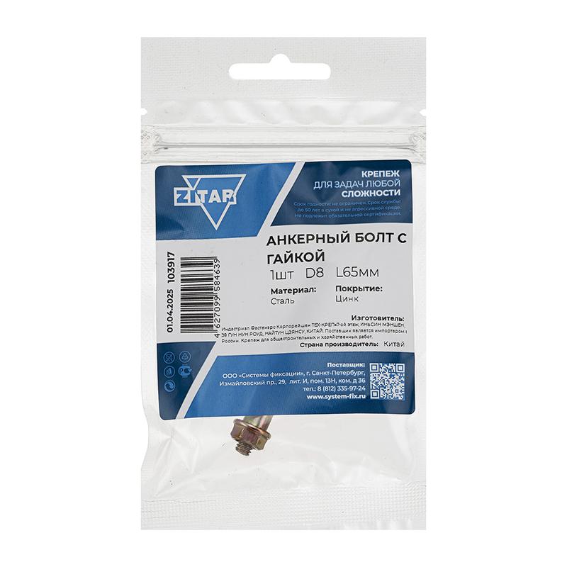 –Болт анкерный с гайкой 8х65 (пакет) Tech-Krep/Zitar 103917