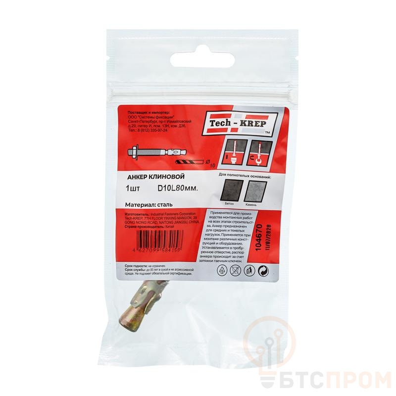 Анкер клиновой 10х80 Tech-Krep/Zitar 104670 фото в каталоге от BTSprom.by