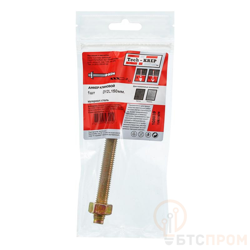 Анкер клиновой WAM представляет собой шпильку с метрической резьбой, с одной стороны которой расположена распорная втулка с лепестками, с другой стороны – зауженный оголовок, который предотвращает деформацию резьбы при забивании анкера молотком. Дополнительно анкер комплектуется гайкой и шайбой. Изготовлен из углеродистой стали с антикоррозионным цинковым покрытием. Предназначен для крепления несущих металлических конструкций (опорные элементы колонн, балок), оборудования, кронштейнов навесных фасадных систем, стоек ограждения к плотному основанию (бетон, природный камень).