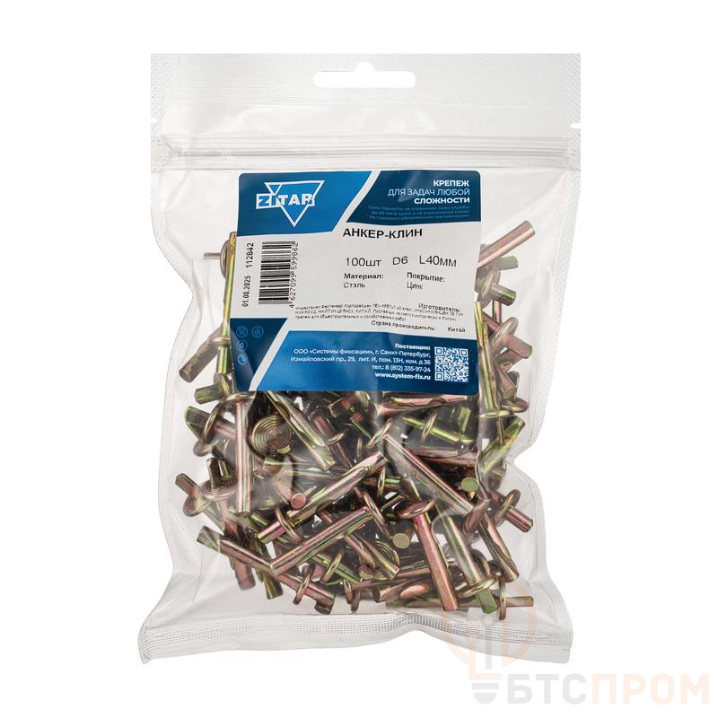Быстромонтажный анкер-клин MAN представляет собой металлическую конструкцию, которая состоит из шпильки, оснащенной стопорной шляпкой, и клина. Шпилька имеет проточку под клин и утолщение на конце. При забивании клин передвигается вдоль шпильки и входит в утолщение, благодаря чему создается эффект расклинивания. Анкер-клин изготовлен из углеродистой стали, покрытие – желтый цинк. Применяется для крепления подвесных потолков, реек, металлических профилей к полнотелому кирпичу, бетону, природному камню. Устанавливается в предварительно просверленное отверстие в прикрепляемом материале и основании, забивается молотком.