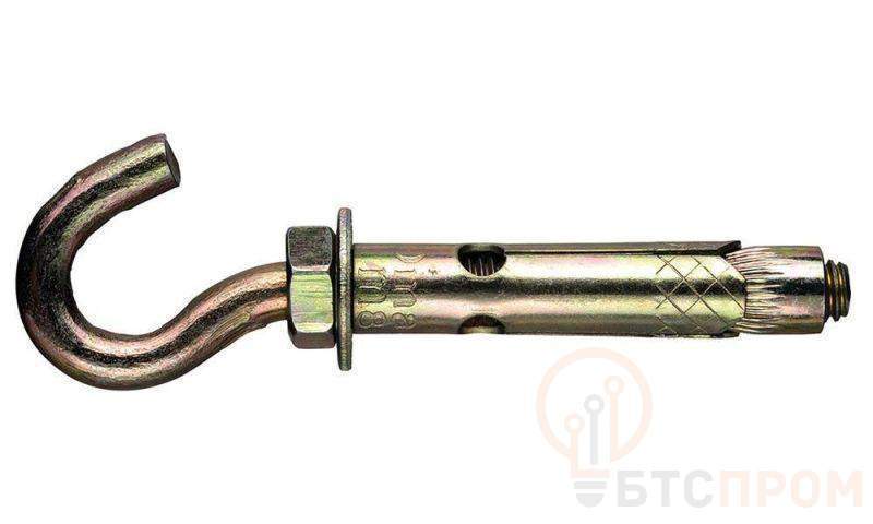 Анкерный болт с крюком используется для вывешивания тяжеловесных съемных конструкций или временного крепления такелажных изделий, таких как тросы, цепи и др. к бетону, кирпичу или природному камню.