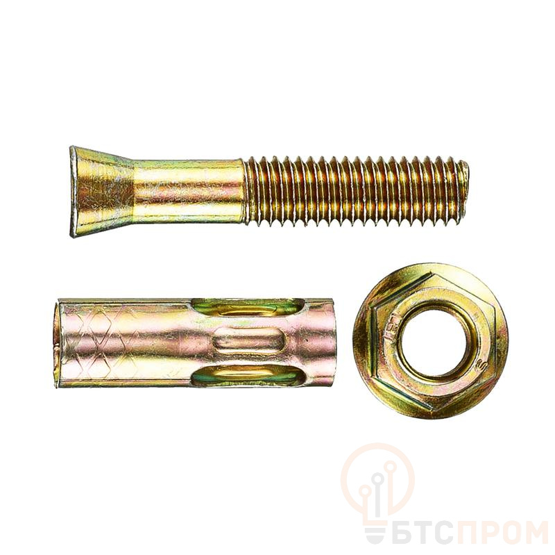 Характеристики: Диаметр — 10 мм, рабочая длина — 40 мм. Упаковка содержит 50 штук, что удобно для крупных строительных и монтажных работ. Болт обеспечивает высокую несущую способность и устойчивость к статическим и динамическим нагрузкам.