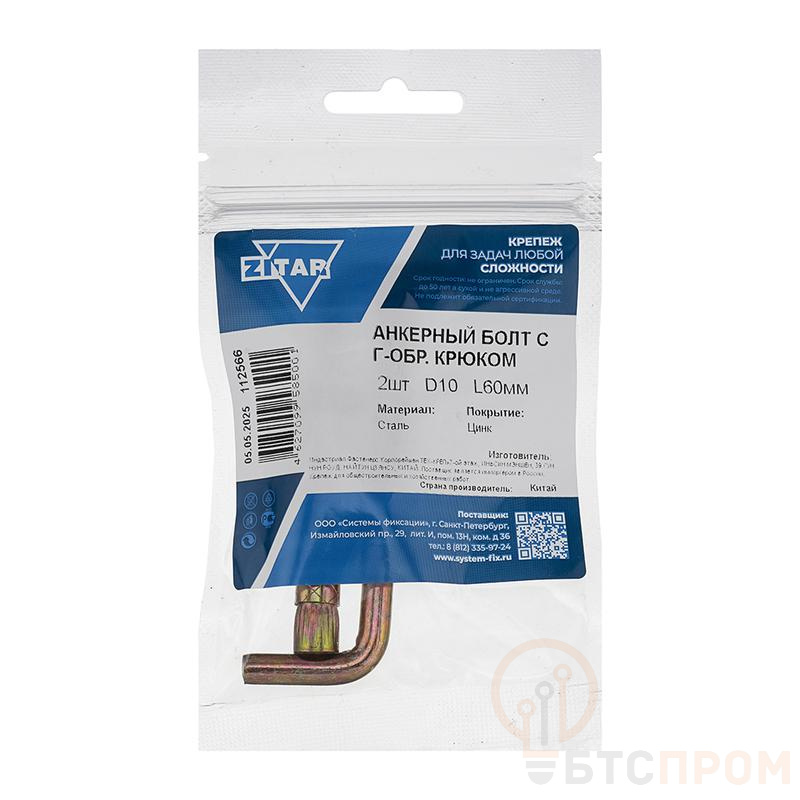 Болт анкерный с Г-образным крюком HL 10х60 от бренда Tech-Krep/Zitar — это надежный и долговечный крепежный элемент, предназначенный для монтажа тяжеловесных конструкций в полнотелые и пустотелые основания. Изделие состоит из стальной оцинкованной шпильки с крюком на одном конце и клиновым узлом для распора на другом.