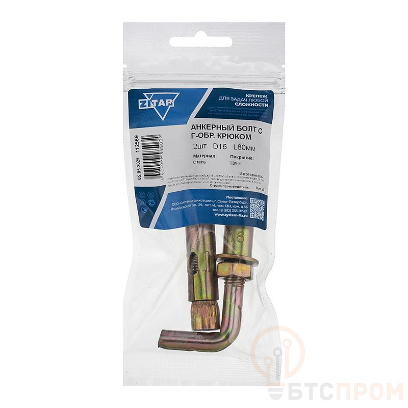 Болт анкерный с Г-образным крюком HL 16x80 от бренда Tech-Krep/Zitar — это надежный и долговечный крепежный элемент, предназначенный для монтажа тяжеловесных конструкций к полнотелому бетону, природному камню и другим плотным материалам. Изделие состоит из стальной оцинкованной шпильки с крюком на одном конце и клиновым узлом на другом, что обеспечивает максимальную прочность соединения.