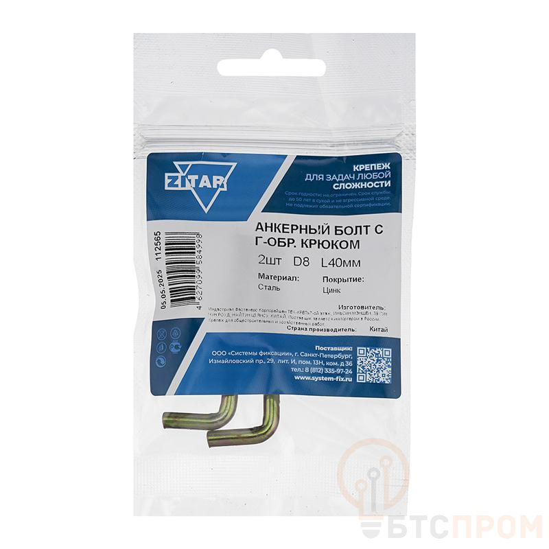 Болт анкерный с Г-образным крюком HL 8x40 от бренда Tech-Krep/Zitar — это надежный и долговечный крепежный элемент, предназначенный для монтажа в основания из бетона, природного камня и полнотелого кирпича. Изделие изготовлено из высококачественной оцинкованной стали, что обеспечивает превосходную коррозионную стойкость.