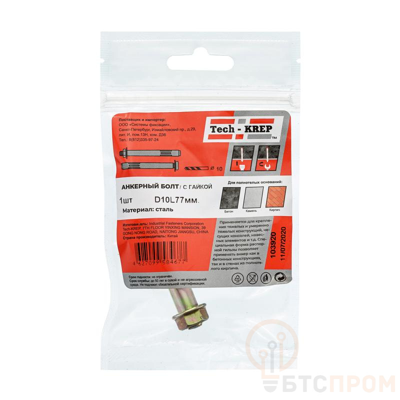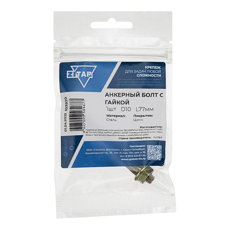 Болт анкерный с гайкой 10х77 Tech-Krep/Zitar 103920 фото в каталоге от BTSprom.by