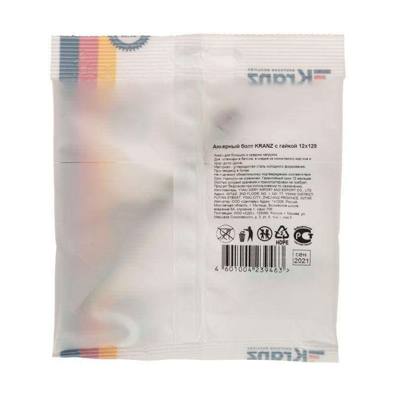 Болт анкерный с гайкой 12х129 (уп.1шт) Kranz KR-01-3818-026 фото в каталоге от BTSprom.by