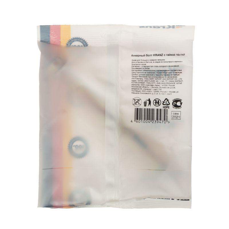 Болт анкерный с гайкой 16х147 (уп.1шт) Kranz KR-01-3818-041 фото в каталоге от BTSprom.by