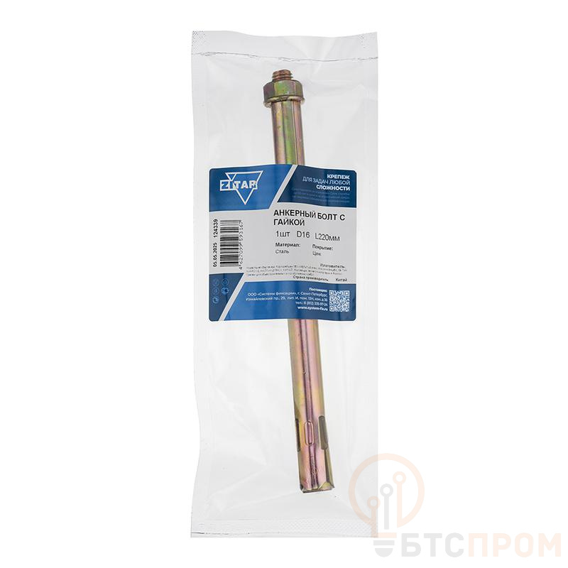 Болт анкерный с гайкой 16х220 от производителя Tech-Krep/Zitar – это высокопрочный крепежный элемент, предназначенный для надежного и долговечного соединения конструкций с материалами основания высокой плотности. Изделие изготовлено из качественной оцинкованной стали, что обеспечивает устойчивость к коррозии.