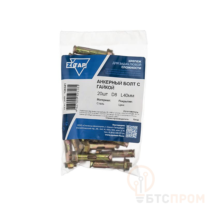 Болт анкерный с гайкой 8х40 от бренда Tech-Krep/Zitar — это надежный и долговечный крепежный элемент для прочного монтажа в основания из бетона, кирпича и природного камня. Изделие состоит из стальной оцинкованной шпильки с метрической резьбой, распорной гильзы и гайки. Принцип действия основан на контролируемом расклинивании гильзы внутри предварительно подготовленного отверстия при затягивании гайки, что создает мощное сопротивление на вырыв и нагрузку на сдвиг.