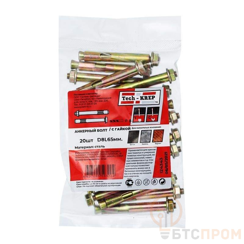 Болт анкерный с гайкой 8х65 (уп.20шт) Tech-KREP 124343 фото в каталоге от BTSprom.by