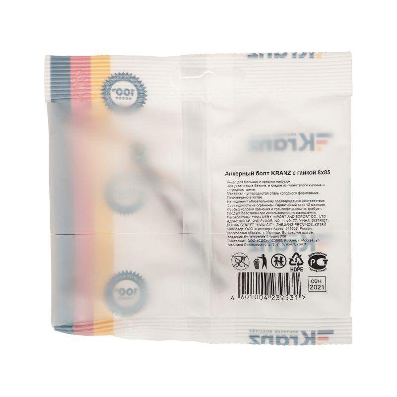 Болт анкерный с гайкой 8х85 (уп.1шт) Kranz KR-01-3818-009 фото в каталоге от BTSprom.by