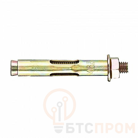Конструкция состоит из стального оцинкованного болта, распорной втулки и шестигранной гайки. Принцип действия основан на распоре втулки в материале основания при затягивании гайки, создавая эффект надежного якоря.
