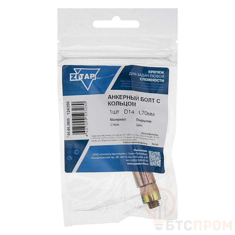 Болт анкерный с кольцом 14х70 от бренда Tech-Krep/Zitar — это надежный и долговечный крепежный элемент, предназначенный для ответственных монтажных работ. Изделие изготовлено из высокопрочной оцинкованной стали, что обеспечивает превосходную устойчивость к коррозии и значительным механическим нагрузкам.