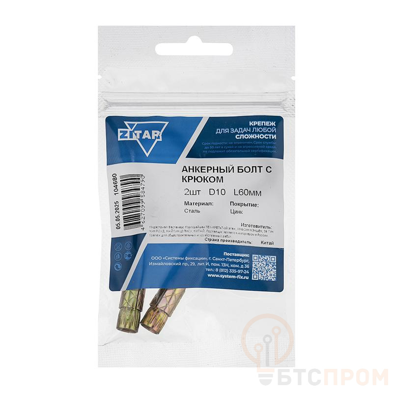 Болт анкерный с крюком 10х60 (уп.2шт) Tech-Krep/Zitar 104680 фото в каталоге от BTSprom.by