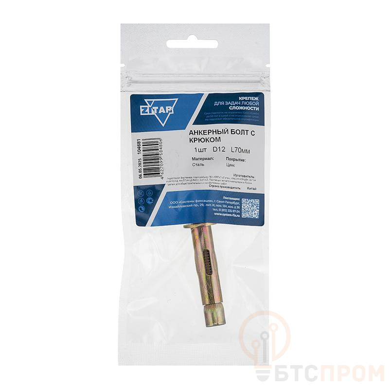 Анкерный болт с крюком HG используется для средних нагрузок. Изготовлен из углеродистой стали, покрытие – желтый цинк. Предназначен для крепления тяжеловесных конструкций и оборудования к основаниям из полнотелого кирпича, бетона, природного камня. Применяется для установки строительных лесов, монтажа подвесных систем, оборудования, такелажных систем, растяжек. Устанавливается в предварительно просверленное отверстие. После демонтажа возможно повторное использование.