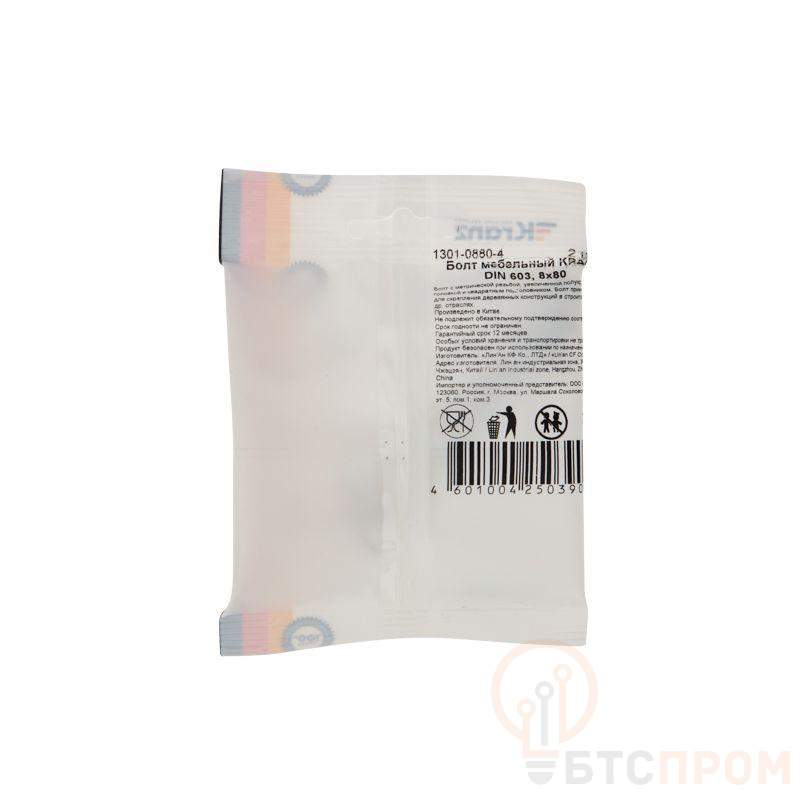 Болт мебельный DIN 603 8х80 (уп.2шт) Kranz 1301-0880-4 фото в каталоге от BTSprom.by